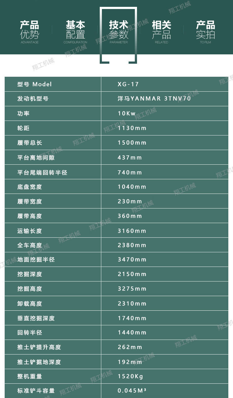 XG1.7t微型挖掘機詳細介紹: