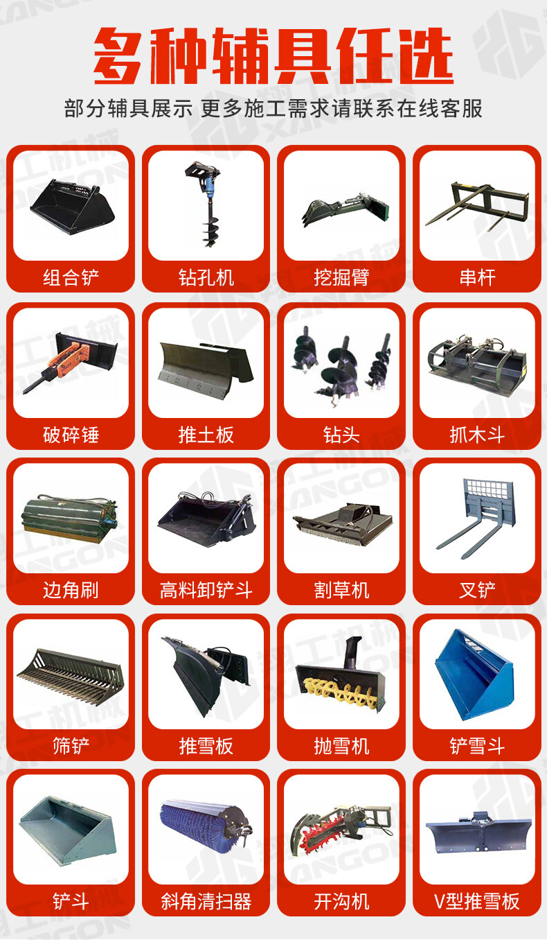 滑移裝載機液壓舉升,可以任意搭配輔具。